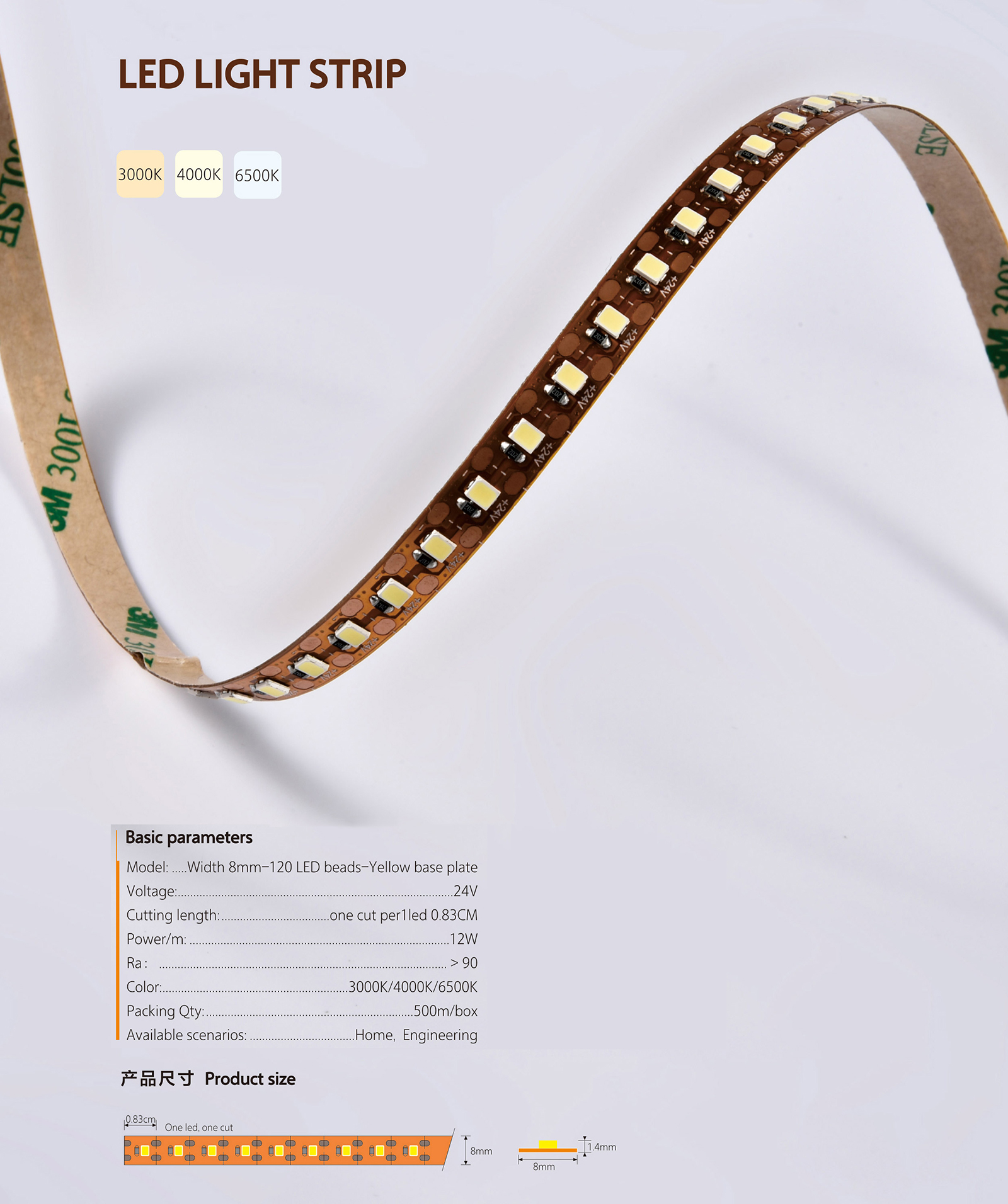 | Series | Width 8mm-120 LED Beads-Yellow Base Plate | Cutting Length | One Cut Per 1 LED 0.83cm |